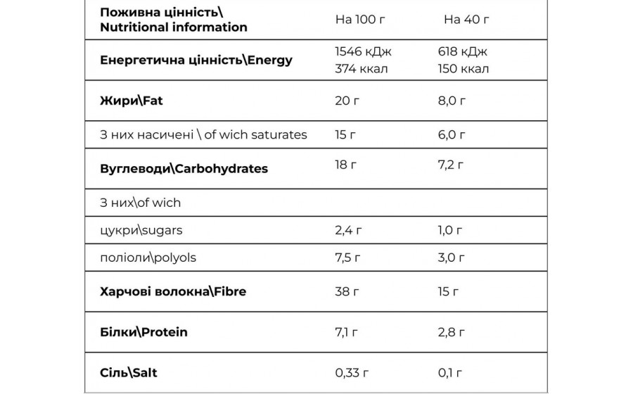 Без доданого цукру — використані лише натуральні підсолоджувачі