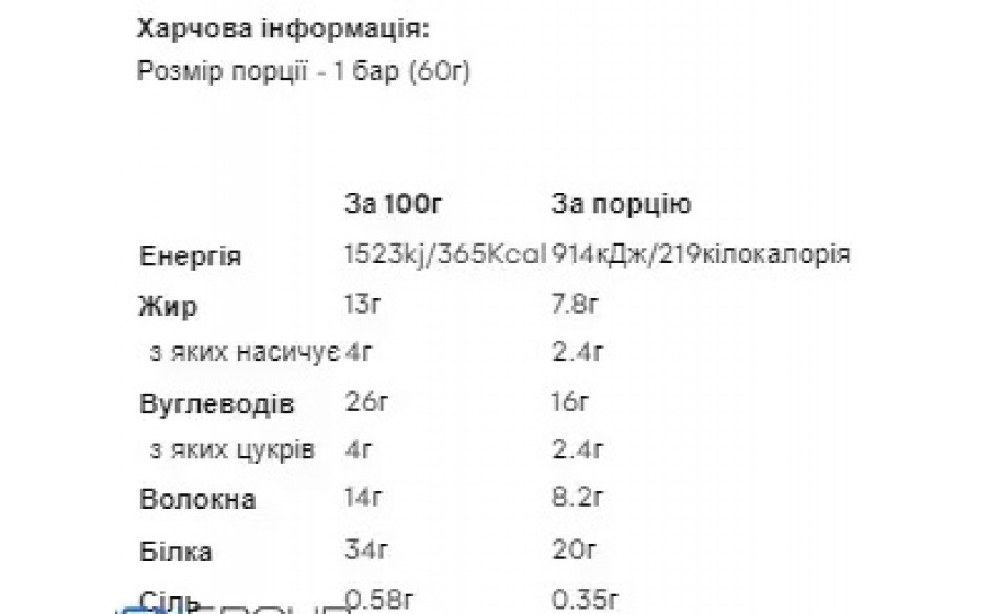 Батончик містить білок, який сприяє підтримці росту та відновлення м’язів після тренування або фізичної активності.