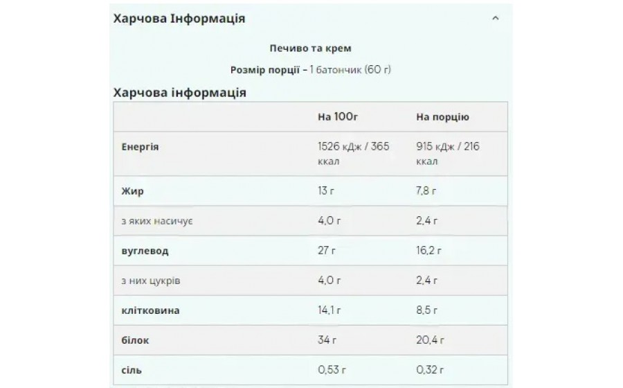 Кремові прошарки, хрумкі елементи і щільна білкова основа забезпечують різноманітний смаковий досвід.