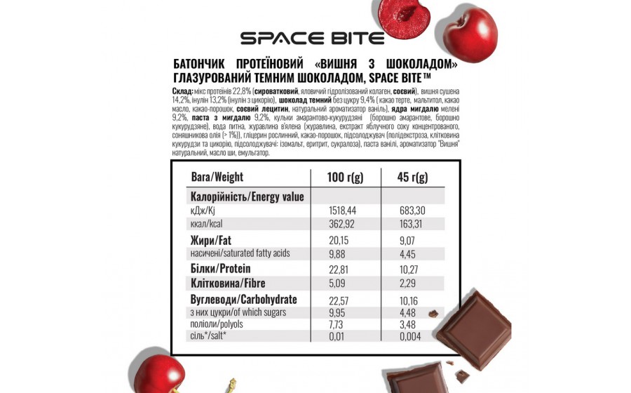Повний опис: Space Bite Cherry & Chocolate 45g