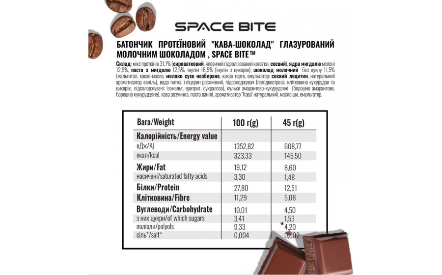 Повний опис: Space Bite Chocolate & Coffee 45g