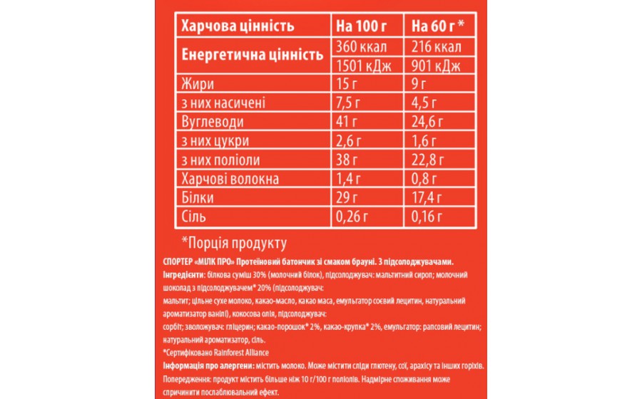 Повний опис: Sporter Milk Pro BAR (60 g, brownie)